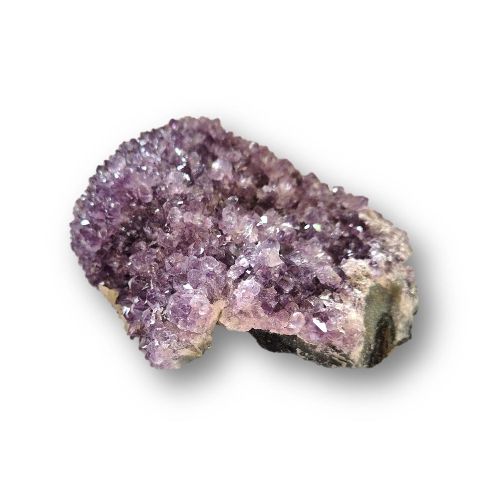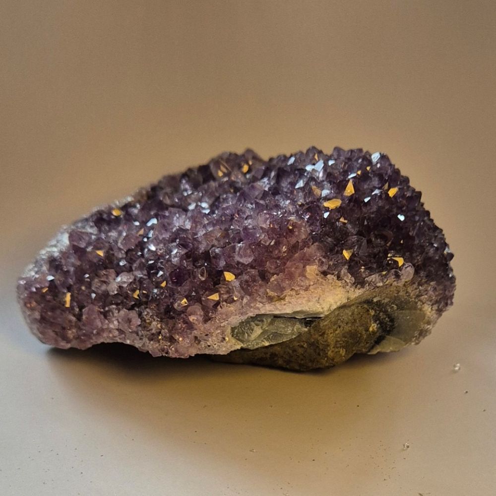 Ein uriges, feines Naturwunder für Sammler, Heilsteinfreunde oder zur Dekoration: Dieses edle Amethyst-Drusenstück stammt aus Brasilien und beeindruckt durch seine kleinen, schön-hell-violetten Spitzen – typisch für besonders schöne Amethyste dieser Region.