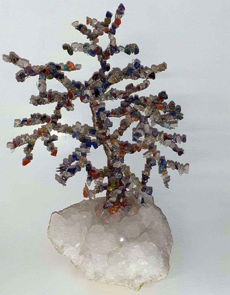 1 Edelstein Baum Edelsten Mix auf Schneequarz Geode
