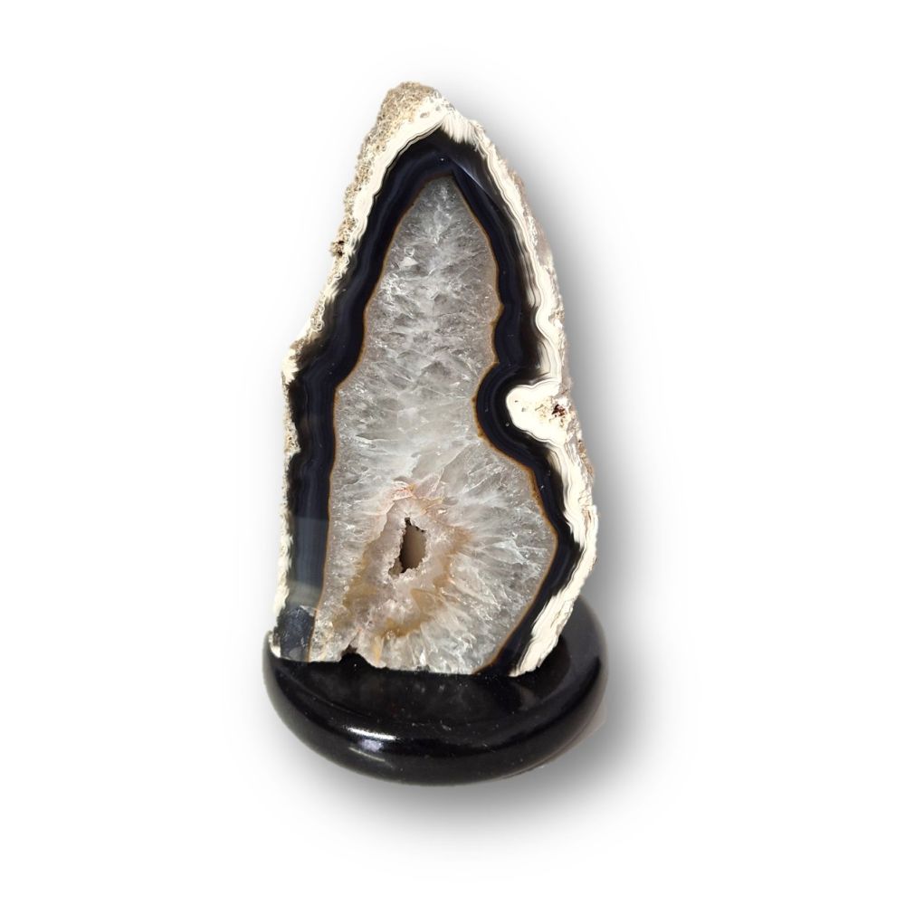aus einer Achatgeode gearbeitet - Vorderfront poliert, rundum Natur belassen