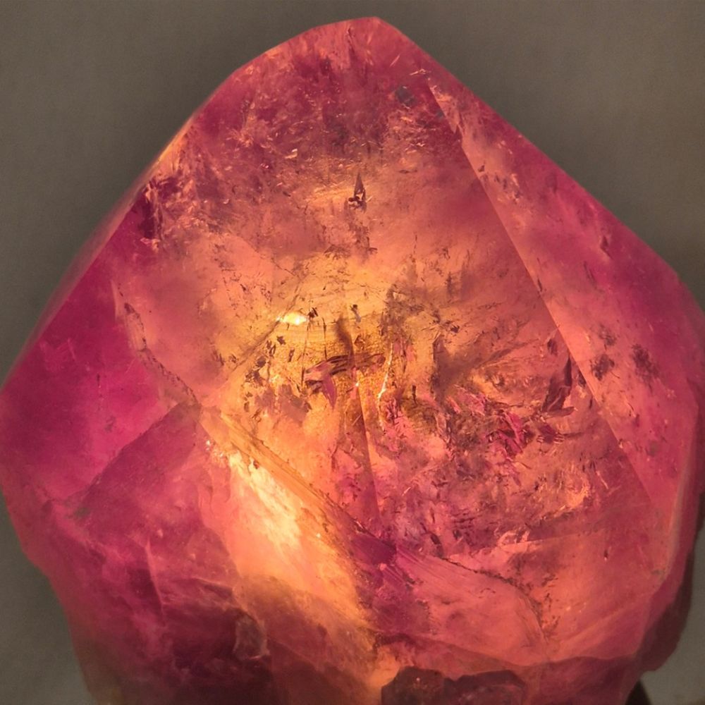 Bringen Sie mit dieser besonderen Ametrin-Lampe ein Stück Natur, Licht und positive Energie in Ihr Zuhause.