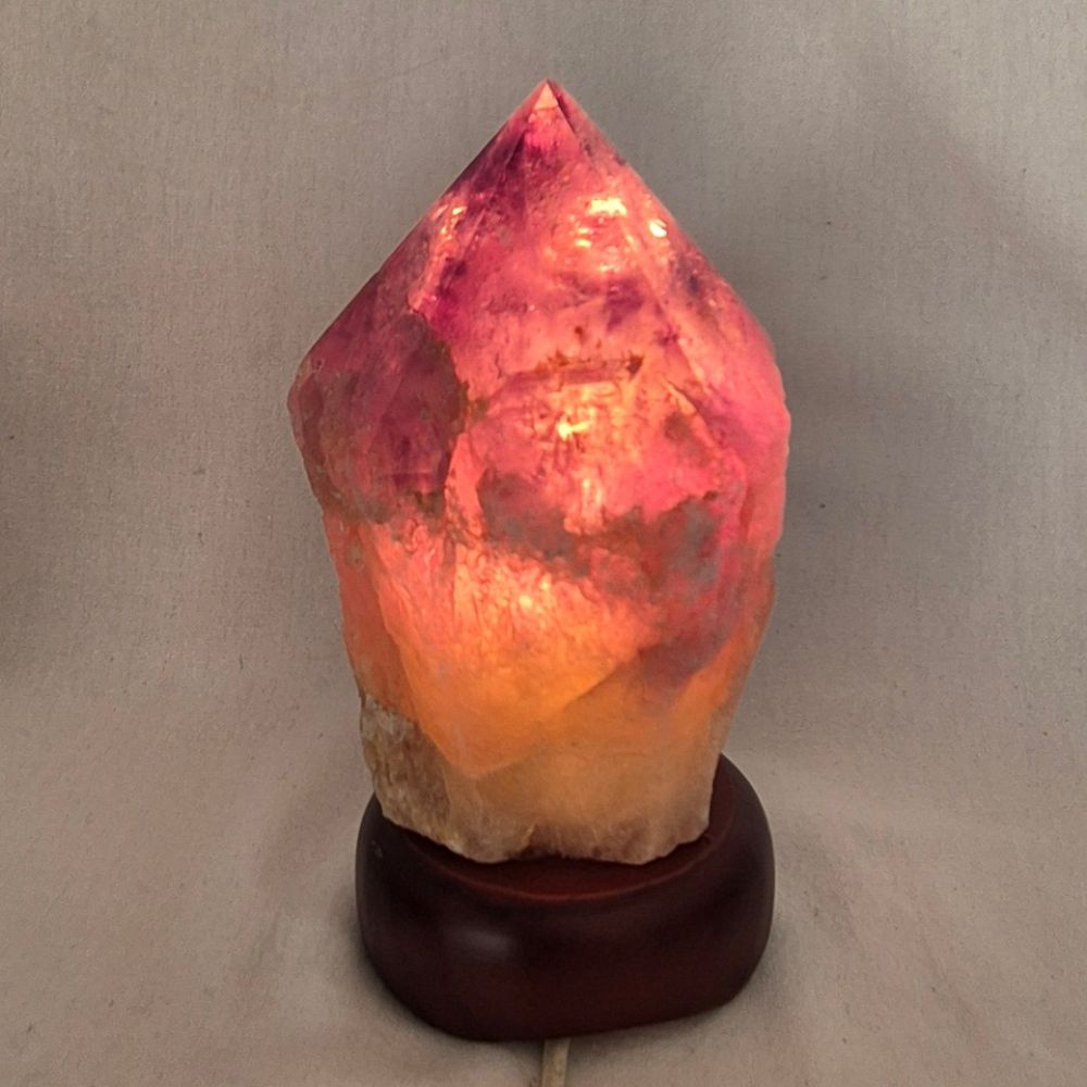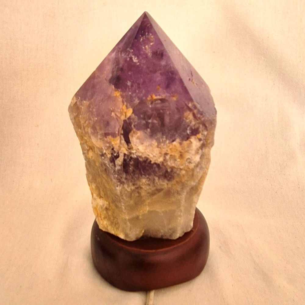 Bringen Sie mit dieser besonderen Ametrin-Lampe ein Stück Natur, Licht und positive Energie in Ihr Zuhause.