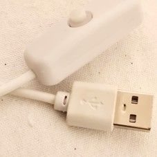 Das Kabel ist weiss, mit Zwischenschalter, 0,95 m lang, USB Anschluss