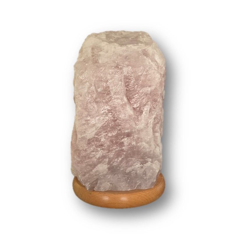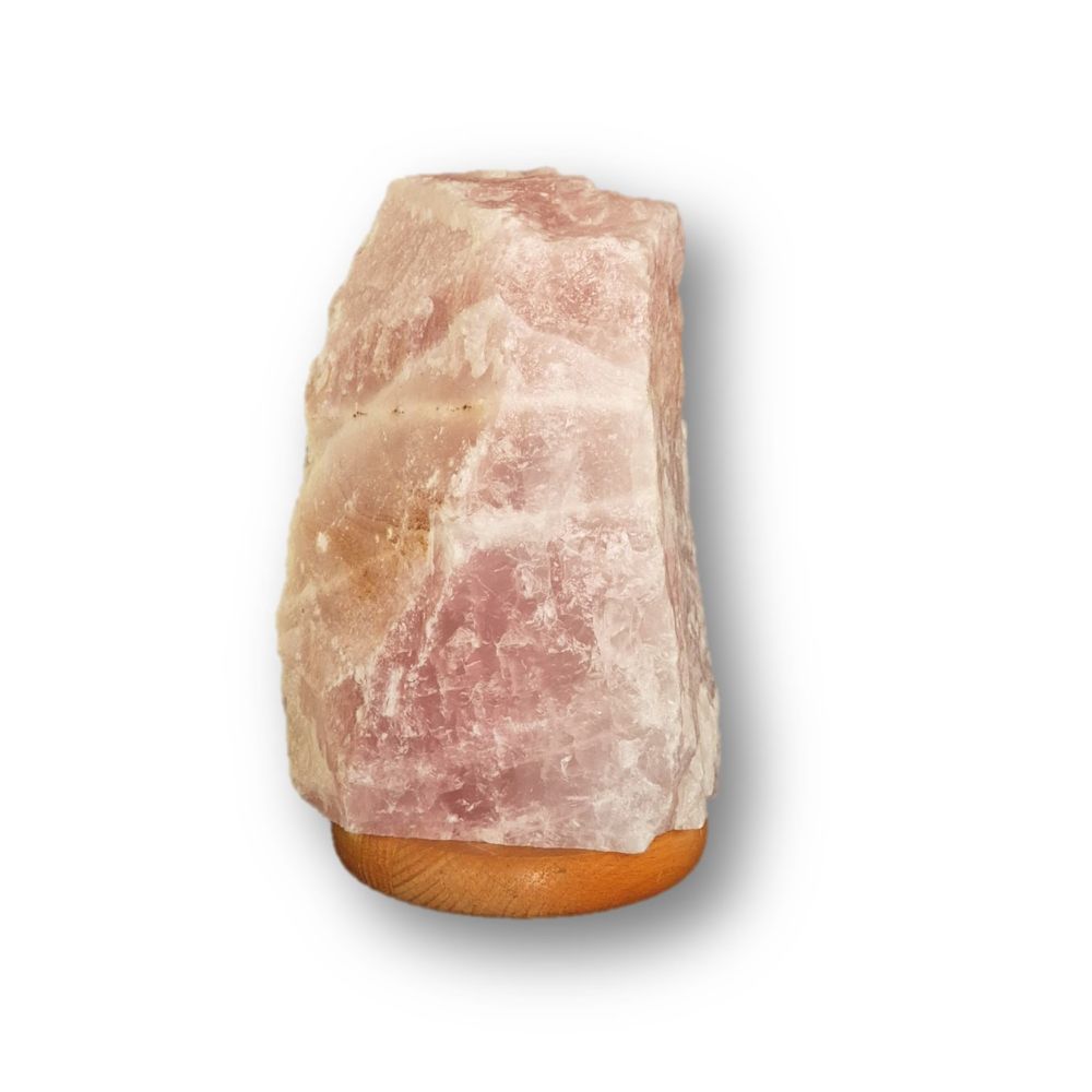 Beeindruckendes Wohnaccessoire aus echten Rosenquarz, das nicht nur dekorativ ist, sondern auch funktional ist - als Leuchtobjekt, Orientierungshilfe in der Nacht, eine Edelsteinlampe für Ihr zu Hause oder als besondere Geschenk-Idee. Um diesen schönen Naturstein zu beleuchten wurde der Hand geklopfte Rohstein in der Mitte ausgebohrt, die Standfläche gesägt. Der Rosenquarz Lampenstein wird auf den Holzsockel gesteckt. Der Lampensockel verfügt über eine E14 Fassung, weißem Kabel mit Kippschalter.