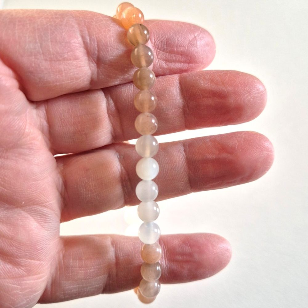 Mondstein Armschmuck - ein Stein der dir Kraft gibt, ein Armband das Glück bringt. Dieses Mondstein Perlenarmband zeigt sich in zarten Pastellfarben, von zart grau-creme-helle Erdtöne. Die 6mm großen Edelstein Kugeln sind angenehm zu tragen und die Gesamtlänge von ca. 19 cm bietet eine ideale Passform für jeden Tag. Die echten Natursteine verleihen dem Armband einen besonderen und einzigartigen Charakter.
