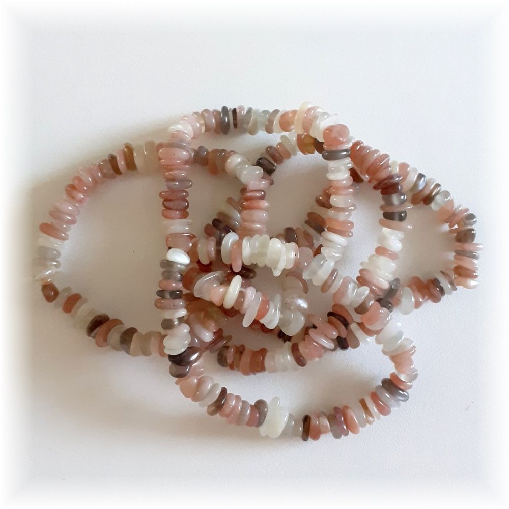Mondstein, auch Frauenstein genannt hier in Multicolor, zu einem Armband verarbeitet, auf Strechband. Die unterschiedlich großen Steinchen, eine wunderbare Edelstein Qualität, die flexible Länge machen dieses Schmuckstück zeitlos und angenehm zu tragen. Reinigung und Pflege: einmal im Monat kurz unter fließendem warmen Wasser abspülen, mit weichem Tuch polieren, aufladen in der Sonne oder mit Amethyst. So behalten die Edelsteine ihren Glanz.Lieferumfang: