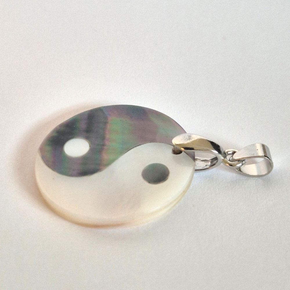 Motiv: Yin & Yang (eine Seite), Rückseite: helles Perlmutt