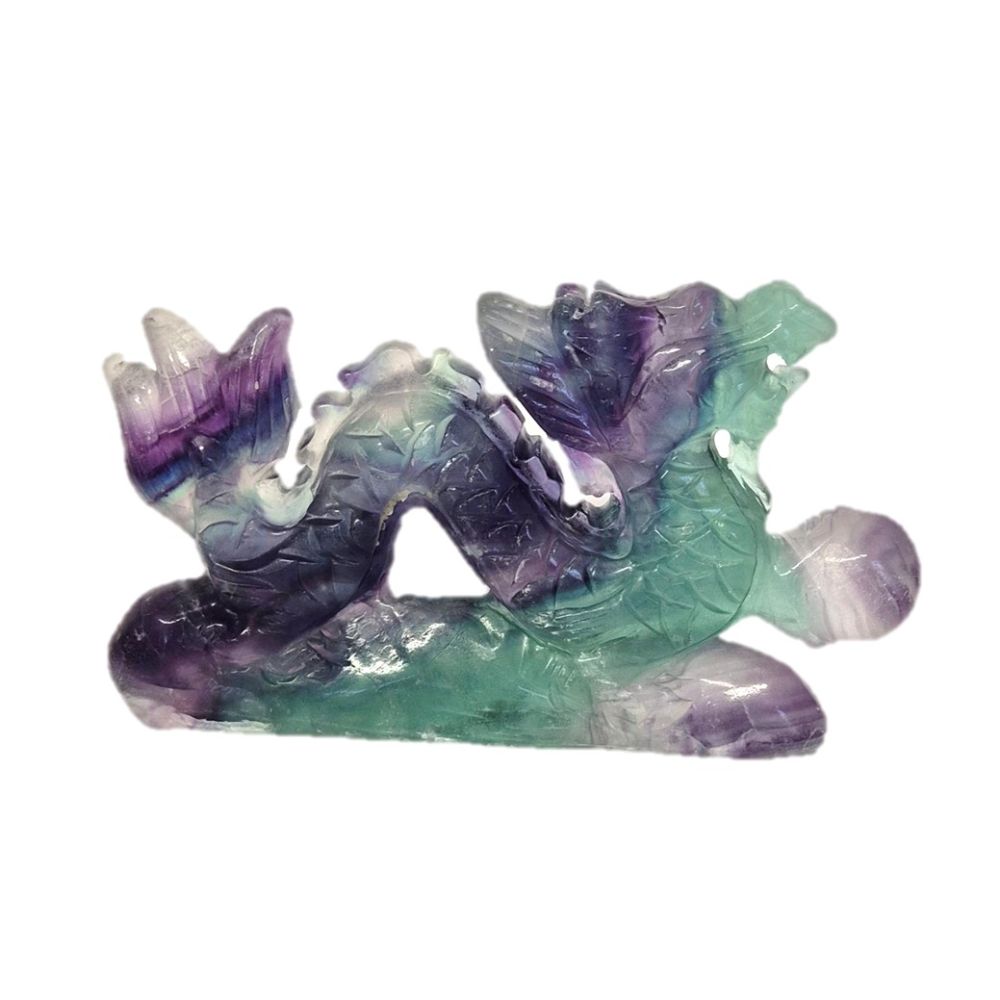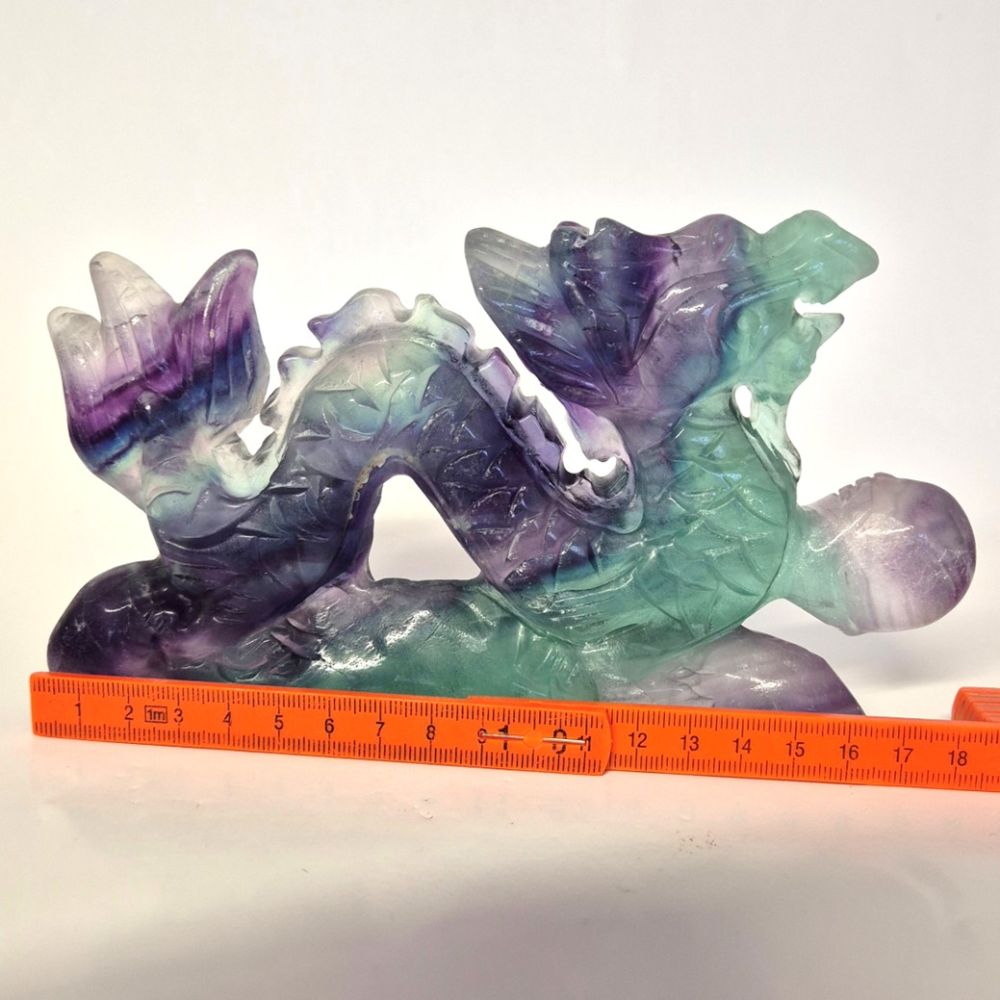 StartseiteEdelstein-TiereDrachen Figur aus Regenbogen Fluorit, Handarbeit große Drache Stein Figur, Fantasy Figur, ca.18 cm