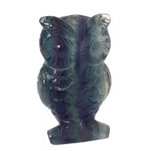 Sie erhalten eine schöne Stein Eule aus dem Edelstein Fluorit - Regenbogenfluorit in Handarbeit gefertigt, verpackt in einem Organza-Säckchen.