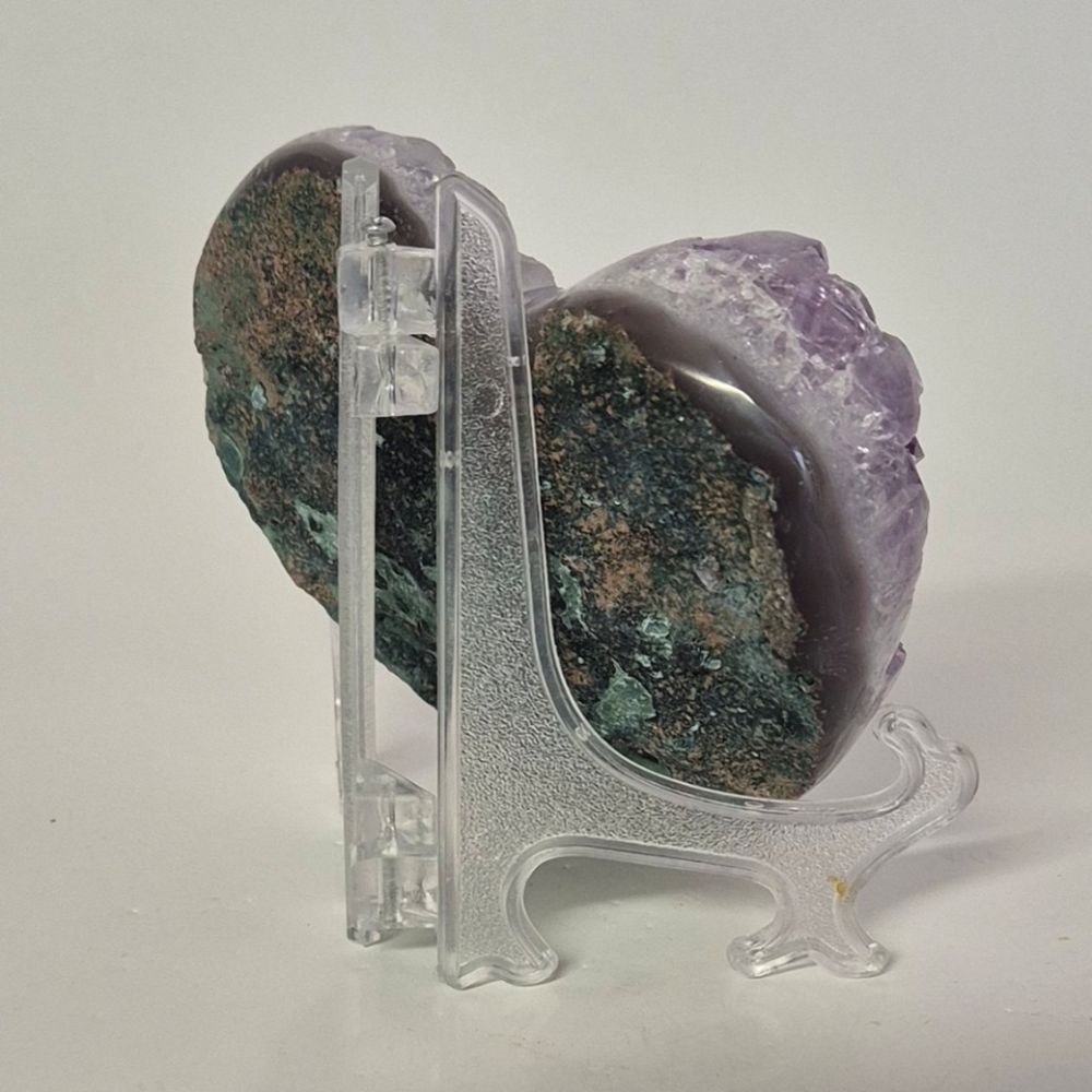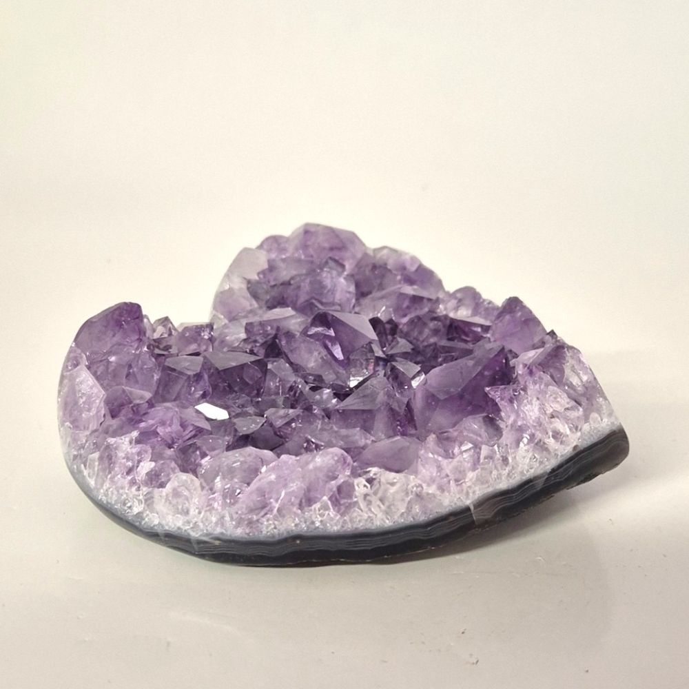 Formschönes Edelstein Amethyst Herz aus einem Drusenstück geschliffen. Vorderseite schöne Naturspitzen, die Rückseite roh Natur belassen. Das Amethystherz als Handschmeichler/Taschenstein ist von sehr guter Qualität und ideal für jede Hosentasche als Glücksbringer, zur Dekoration...