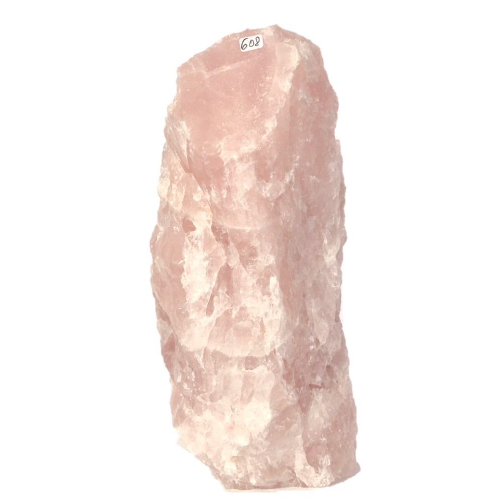 Wunderschöner Rosenquarz Rohstein in naturbelassener Form, Hand geklopft mit gesägter Standfläche. Dieser dekorative Edelstein ist ein echter Blickfang für Garten, Balkon, Wohnraum oder Wintergarten.