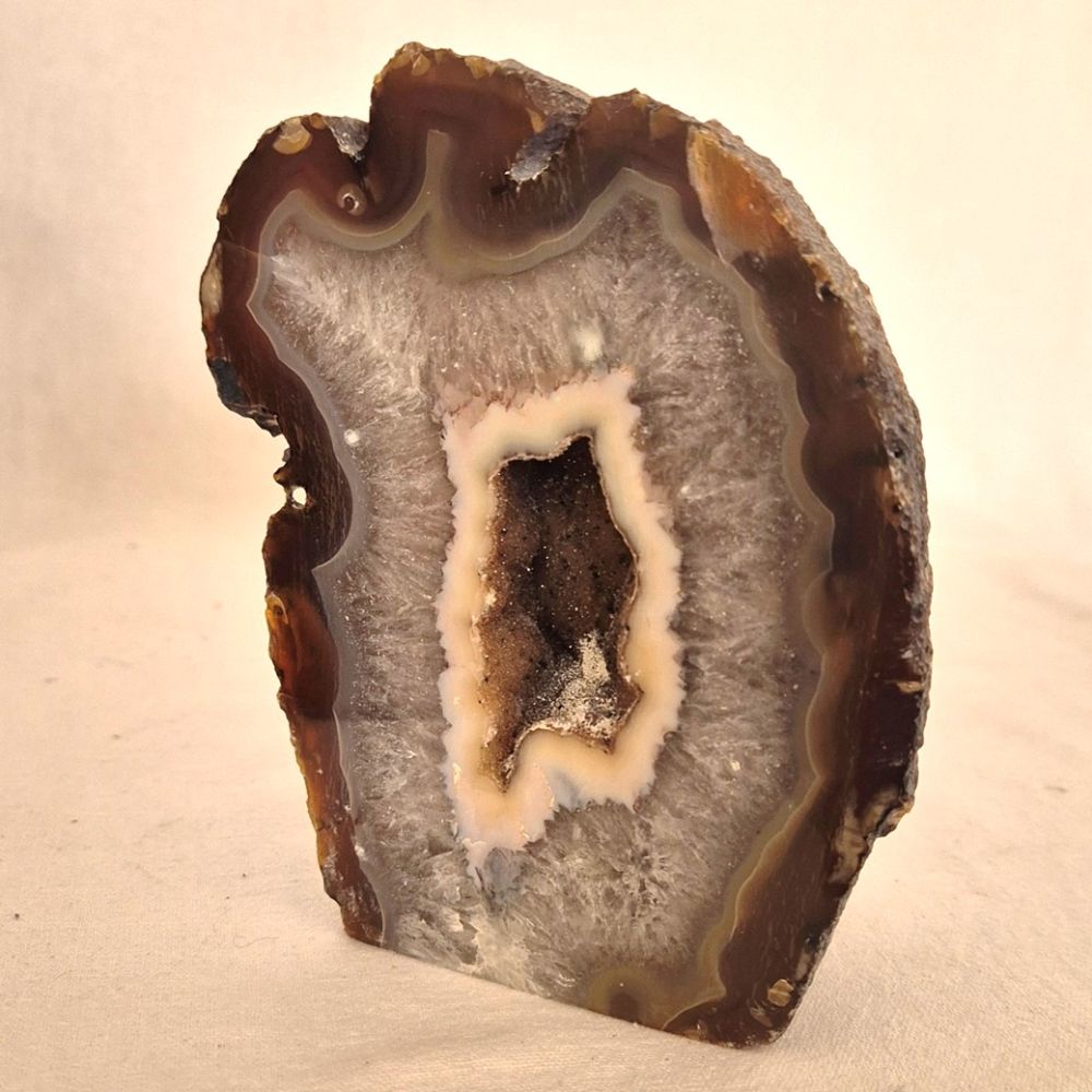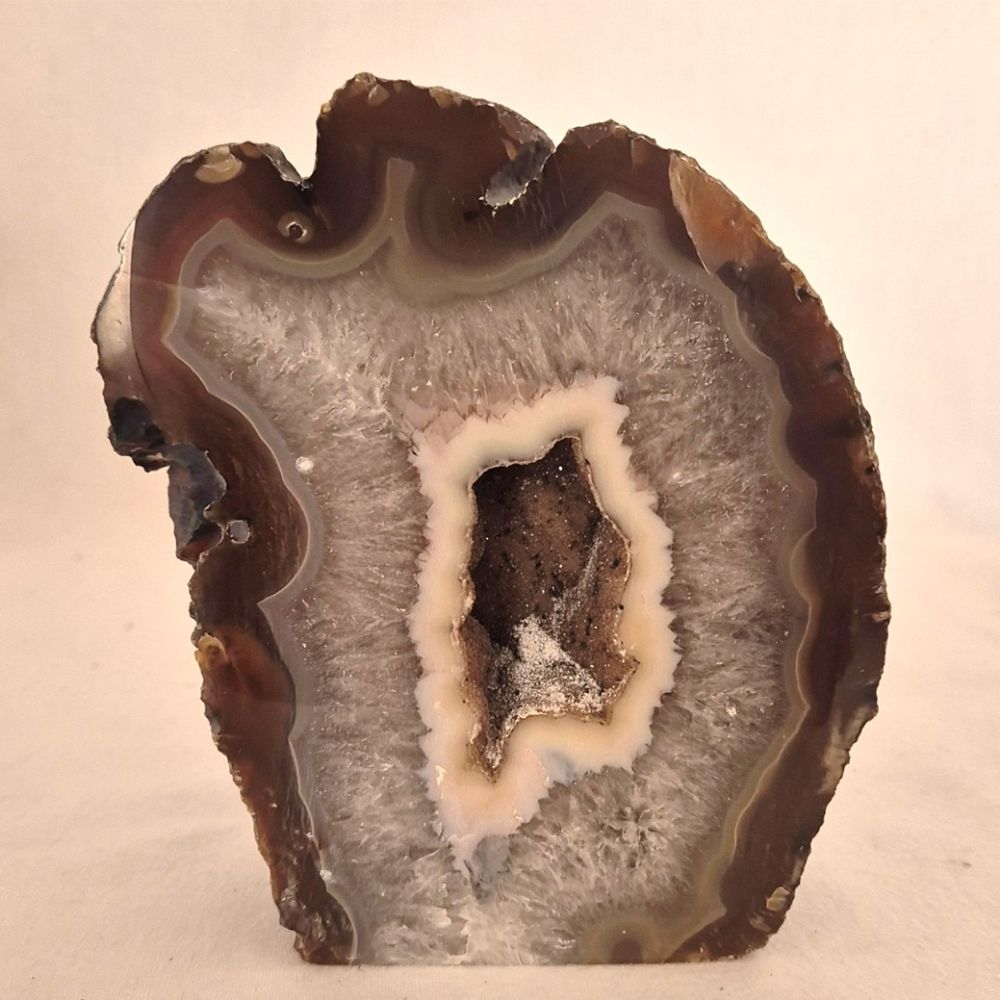 Hier betrachten Sie eine Achatgeode mit einer offenen Höhle in der Mitte. Ein wundervoller Achat- Naturstein, das schönste was die Erde zu bieten hat.