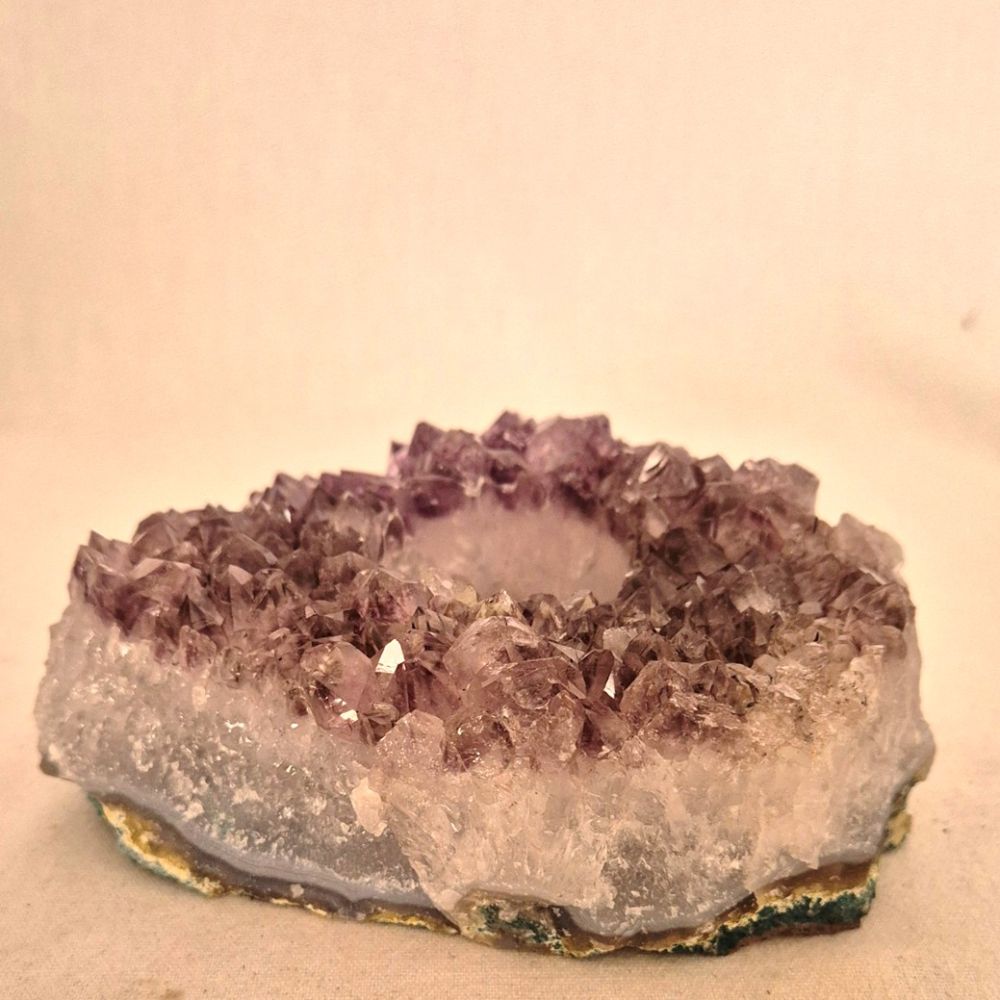 StartseiteStein-TeelichthalterEchter Amethyst Naturstein mit wunderschöner, violetter Kristallstruktur, Kerzenhalter N108