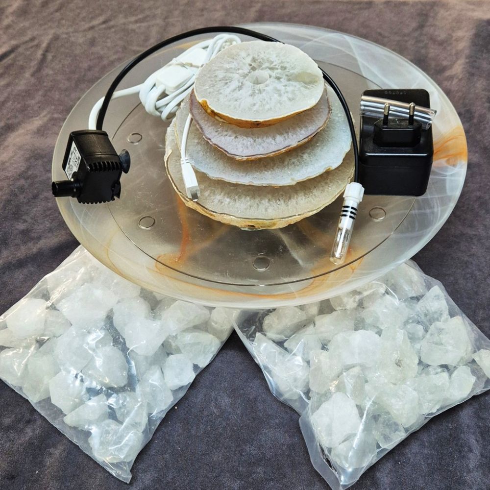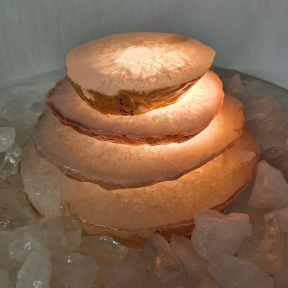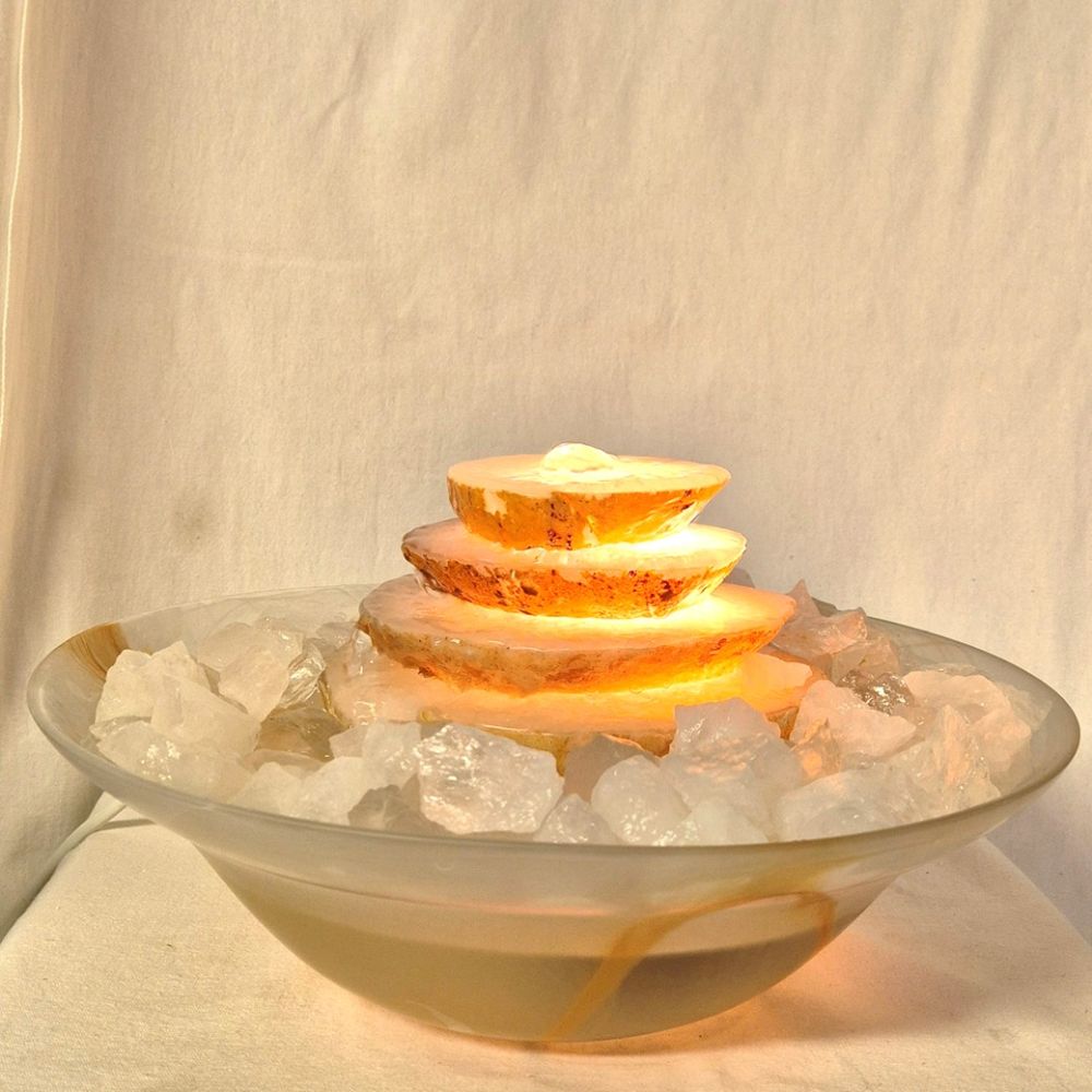Achat-Kaskaden Zimmerbrunnen beleuchtet, Raumluftbefeuchter & Meditationsbrunnen