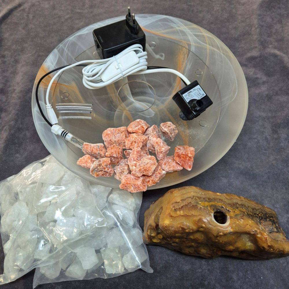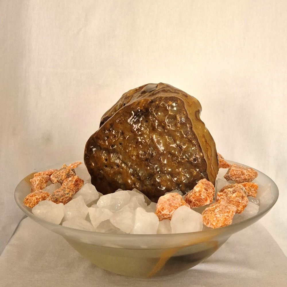 Echter Naturstein Brunnen für den Innenbereich, Flussachat und Bergkristall